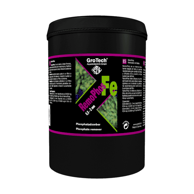 RemoPhos ist ein auf Eisen basierendes Adsorbermaterial, welches schnell und sicher grosse Mengen Phosphate und Silikate aus ihrem Aquarium entfernt, ohne dabei schädliche Stoffe abzugeben