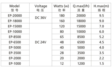 Die Jebao EP-Serie umfasst folgende Modelle: